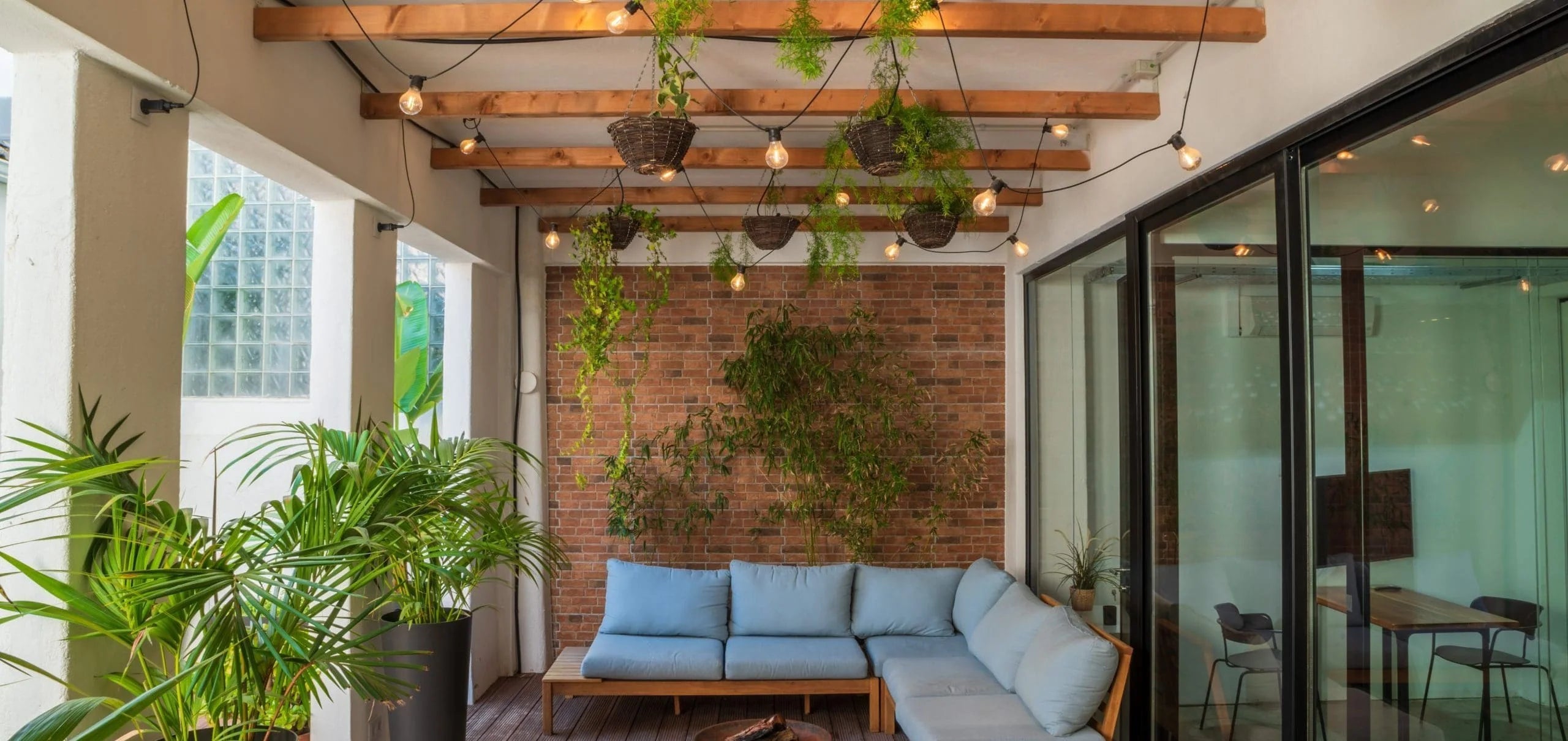 Nos espaços exteriores do Kube podes trabalhar ao sol, relaxar na zona lounge ou fazer uma pausa com um jogo rápido de pingue-pongue ou uns lançamentos no cesto de basquetebol.